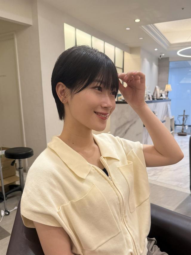 現在の髪型はショートです。