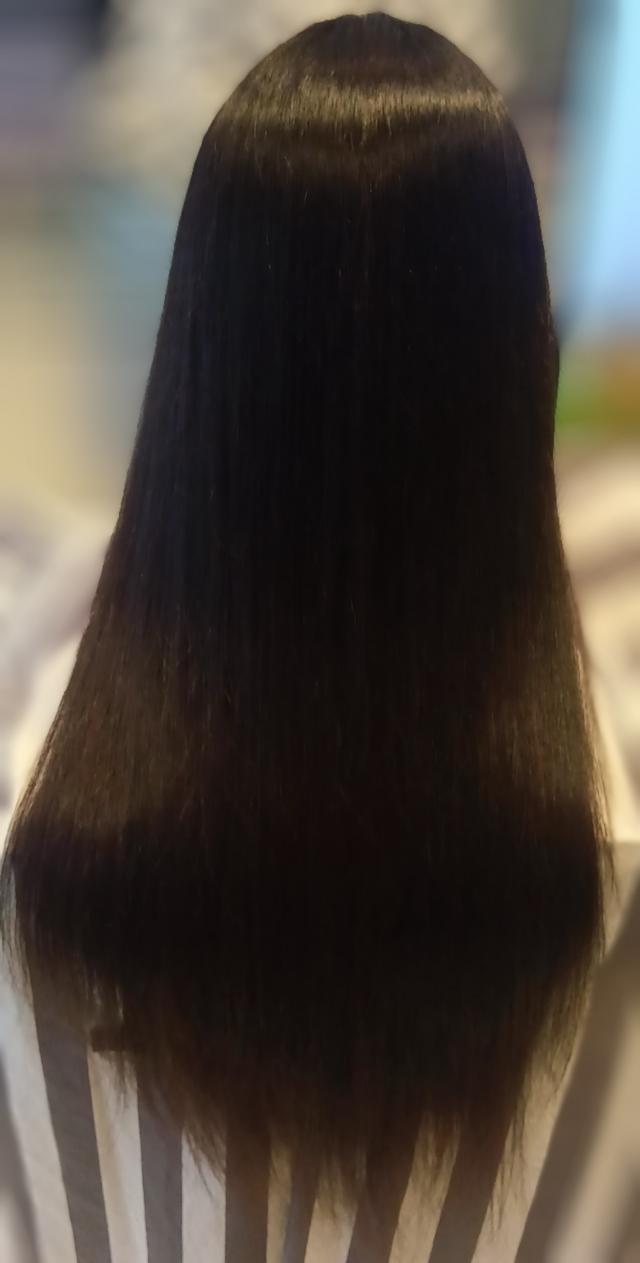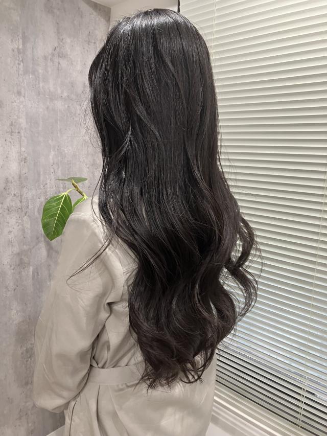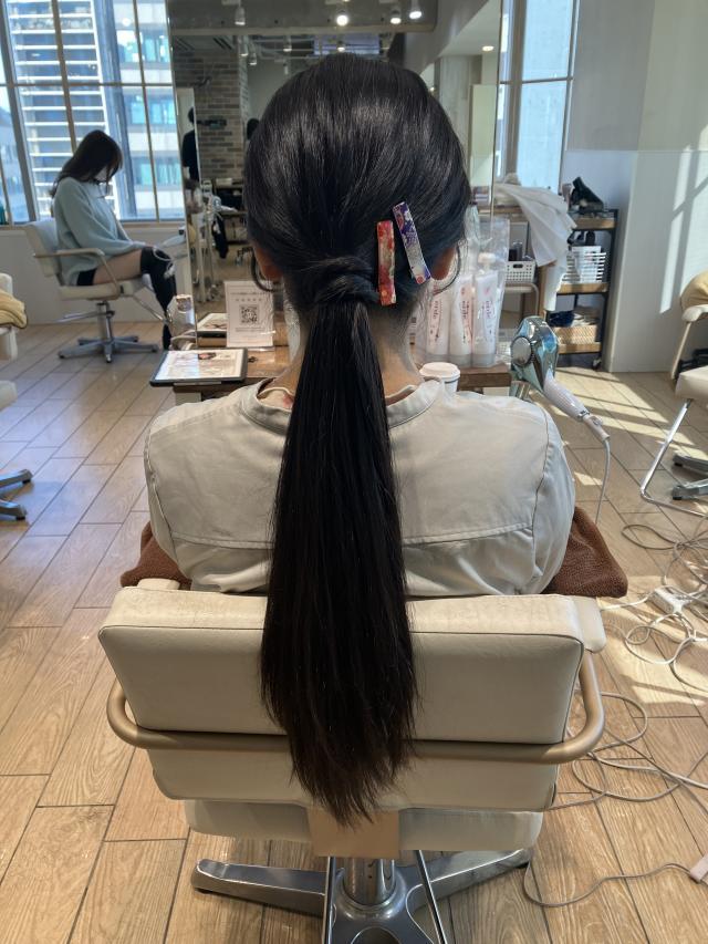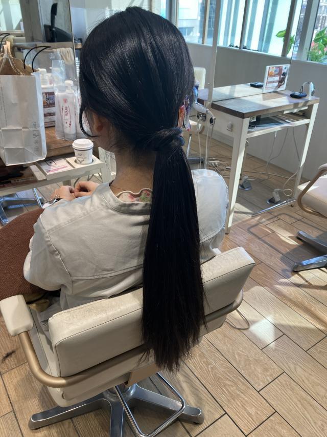 ●1番長い部分で腰まであるロングヘアです。もう少し伸ばしたいので、カットは長さを変わらないカットや顔周りのカットを希望しています。